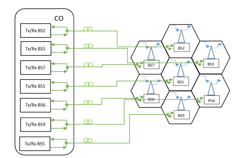 Fig. 1 shows the environment for the proposed architecture, in which the BBUs are centralized in the CO and the millimeter-band carriers are transported as optical subcarriers in the Optical Distribution Network (ODN) [18], between the CO and BS and vice versa.