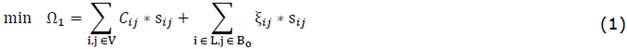 The following linear mathematical model describes the evaluation of the transportation and distribution networks with objective functions Ω1 and Ω2, respectively.