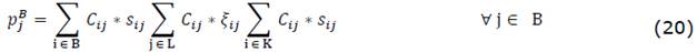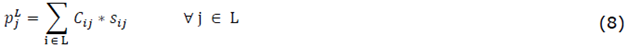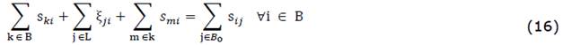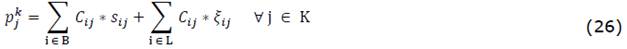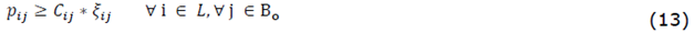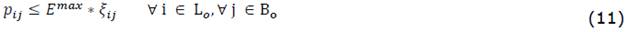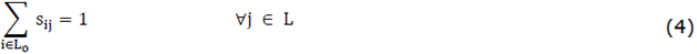 ℰ𝑖𝑗 Binary decision variable for the use of the path between nodes I ∈ L and j ∈ B