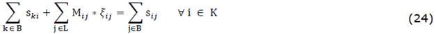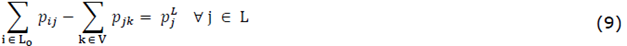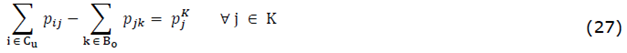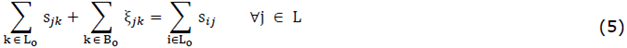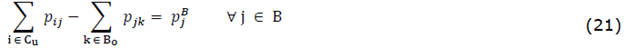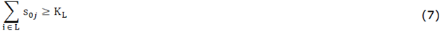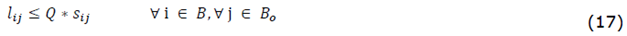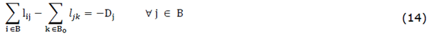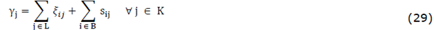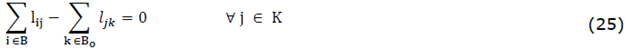 Similar to (3)-(7), the set of constraints (14)-(18) are established for modeling the OVRP for backhaul routes. Note that constraint (19) ensures that the number of arcs leaving the depot is equal to the number of arcs entering the same. A comparison of inequalities (19) and (7) reveals that the number of linehaul arcs leaving the depot may be different to the number of backhaul arcs arriving there. This case occurs when there are tie-arcs between a linehaul route and the depot. Besides that, parameter KL limits the quantity of vehicles needed to serve the BCs.