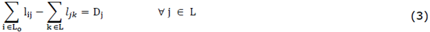 𝑙𝑖𝑗 Continuous variable indicating the amount of goods transported between nodes i and j