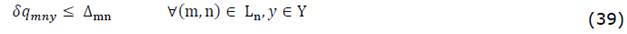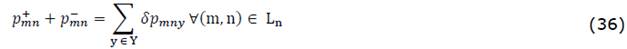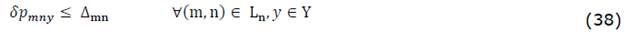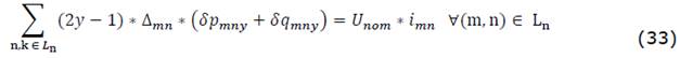 | be the summation of the discretization variables. The latter are limited by constraints (38) and (39) for active and reactive power, respectively. Parameter ∆𝑚𝑛 is calculated via equation (40), which relates the nominal parameters of the system with the quantity of discretization |Y|.