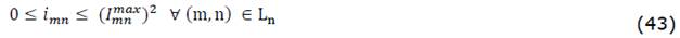 𝑖𝑚𝑛 Square of the current flowing in he line (m,n)∈ Ln