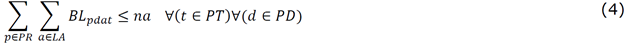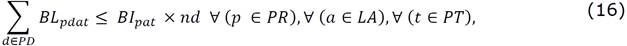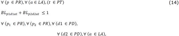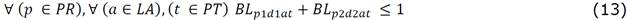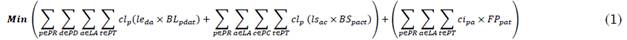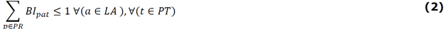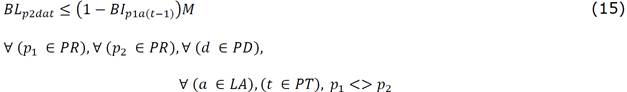 BLpdat= Variable binaria asociada a el producto p “1” si ingresa por la puerta de descarga d y se asigna al lugar de almacenamiento a, en el tiempo t, “0”de lo contrario.