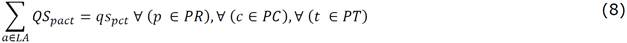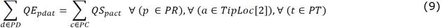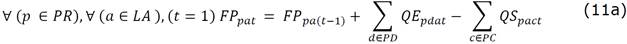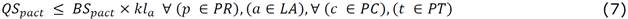 QSpact = Cantidad enviada del producto p desde el lugar de almacenamiento a , hasta la puerta de carga c , en el tiempo t.