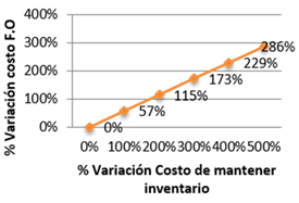 En la Fig. 2, se puede observar las variaciones del costo de mantener inventario versus la variación que representa el costo de la función objetivo.