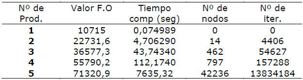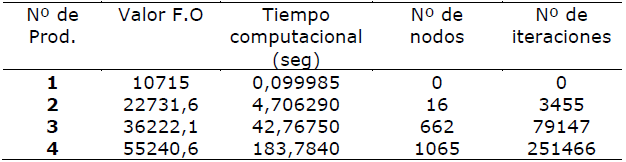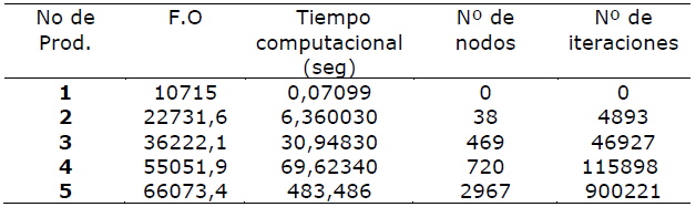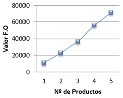 También se puede observar que a medida que el número de productos aumenta el valor de la función objetivo como se observa en la Fig. 3.