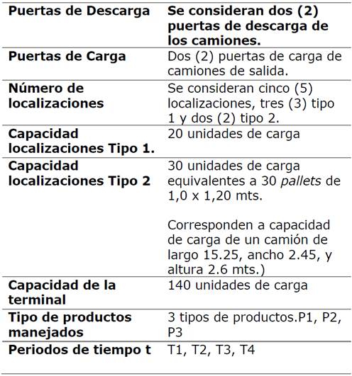 En la Tabla 1 se presentan las características propias de la terminal Cross-Docking: