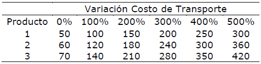 Al realizar la variación del parámetro de costo de transporte, se cargaron los archivos correspondientes en el lenguaje de programación AMPL, y se consolidaron los resultados obtenidos para la función objetivo, tal como se muestra en la Tabla 12: