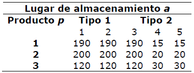 cipa= Costo de almacenar el producto p en el lugar de almacenamiento a.