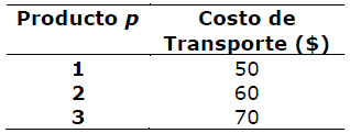 El parámetro 𝑐𝑙𝑝 (costo de trasporte del producto p ) se planteó en el caso de estudio inicialmente con un valor de 50, 60 y 70 pesos por cada uno de los productos respectivamente.