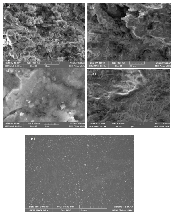 El análisis de tamaño y morfología de los precursores y de las muestras se efectuó mediante MEB, utilizando un Microscopio de Barrido Vega 3 TESCAN, del Departamento de Física de la Universidad Nacional de Colombia.
