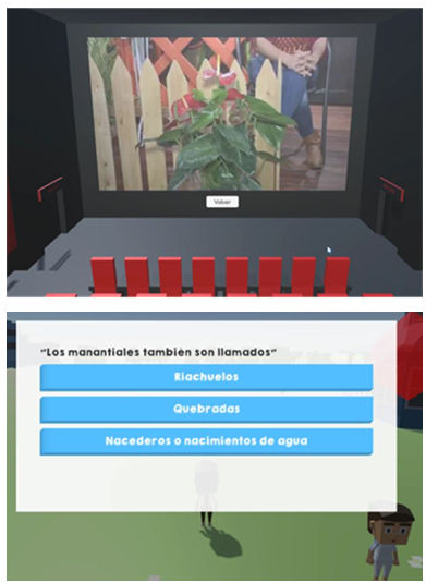 “que hoy jugamos un juego y tiene biblioteca, cine, etc. Y en el cine podemos ver películas sobre el agua, y lo mismo con comics”