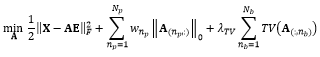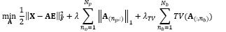 Where TV (A(:,nb)) is a vector extension of the non-isotropic TV and (λ, λTV) ≥ 0 are regularization parameters.