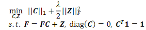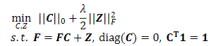 where, -norm is the number of nonzero elements of C; Z, the error matrix; and λ, a regularization parameter for the sparsity coefficient and noise level trade-off. The constraint diag (C) =0 is used to eliminate the trivial ambiguity where a point is represented by itself, and the constraint