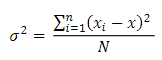 Variance measures the dispersion of the data around the mean. If it is low, the values of the set are mainly grouped; if it is high, the elements are scattered [16]. Variance is equal to the standard deviation squared and is defined as the expectation of the squared deviation of a variable from its mean is obtained from (2), where xi is a value of a data set; x is the average of the data set; and N is the number of data.