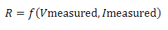 The function that should be analyzed is related to the calculation of the value of Resistance 𝑹 from the measured variables Voltage 𝑽 and Current 𝑰. The measured voltage includes the voltage drop in the ammeter due to the internal resistance of the same (𝑅𝑎), which should be subtracted to determine the exact value on the resistance. Then, the net voltage on the resistance 𝑅 will be (8).