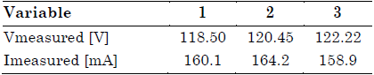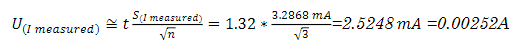 If the measurements include less than 10 samples, the t-student distribution is used, with the degrees of freedom for samples n, (in this case 𝒏 = 3 and a 68.27 % probability), to ensure that the range has up to one standard deviation; for that purpose, factor t [23] has a value of 1.32. Therefore, the uncertainty of the measured voltage is (11).