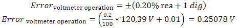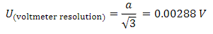 Uncertainty due to the incorrect operation of the voltmeter is given by the norm as a rectangular distribution (16).