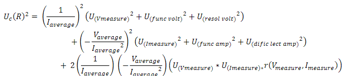 After the (27) is evaluated with each of the terms, it is possible to obtain the value of the combined uncertainty, which is (28).