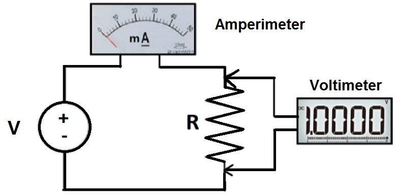 Fig. 2 shows the assembly suggested to students, which includes DC power supply, ammeter, voltmeter, and resistance, whose value must be determined.