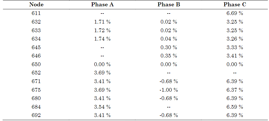 Additionally, in the simulation, the losses in transformers and system lines are calculated in the conventional and the two DG scenarios. To better visualize the simulation results, the IEEE 13-node system was divided into two zones: Zone 1 contains nodes 646, 645, 632, 633, 634, and 671; and Zone 2, nodes 611, 684, 692, 675, 652, and 680. The most significant variations are analyzed below.
