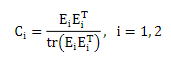 Para utilizar esta distancia en un problema de clasificación de señales Ei, se obtienen matrices promedio, una para la clase 1, , y otra para la clase 2,