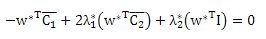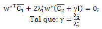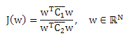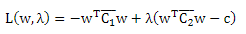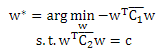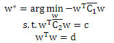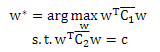 Nótese que si w* maximiza el Cociente de Rayleigh entonces cw* también maximiza este cociente dando el mismo valor. Luego entonces el problema de optimización en (3) puede ser planteado como un problema con restricción (4):