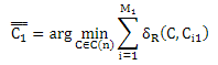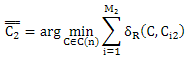 . La discriminación de una matriz C se hace por menor distancia a las matrices promedio anteriores. Para encontrar estas matrices promedio, no es posible utilizar la fórmula de media de aritmética de matrices convencional, utilizada en la sección anterior, ya que las matrices de covarianza no residen en el espacio euclídeo sino en una variedad Riemanniana. En este espacio la matriz promedio asociado a M1, matrices de covarianza para la clase 1 y M2 matrices de covarianza para la clase 2, se obtiene resolviendo los siguientes problemas de optimización respectivamente (18) y (19):