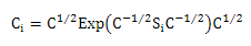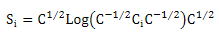 ) es el logaritmo de una matriz, el cual se calcula, con ayuda de la descomposición en valores singulares de C mediante el siguiente producto de matrices: U(diag[ln(𝛽1), … ,ln (𝛽n)]) U𝑇, donde U es la matriz de autovectores de C. ‖⋅‖F es la norma de frobenious de una matriz, la cual se obtiene como la raíz cuadrada de la traza del producto entre la matriz y su transpuesta.