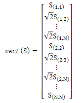 Para la construcción de filtros y de clasificadores en el espacio tangente, la matrices de covarianza proyectadas, las cuales son simétricas, Si,j = Sj,i, pueden vectorizarse utilizando únicamente su parte triangular superior (22), como en [14].