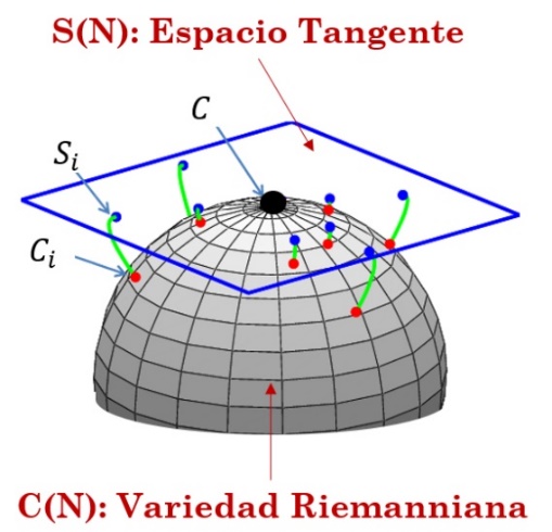 Las expresiones matemáticas para el logaritmo y exponencial Riemanniano para proyección y reproyección tangente, respectivamente, se muestran en (20) y (21). Igualmente, estas operaciones se ilustran en la Fig. 3.