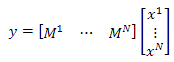 where y is an 𝑚 𝖷 1 vector describing the measurements of 𝑚 EEG electrodes at a time instant; 𝑥, an 𝑛 𝖷 1 vector describing the brain activity at 𝑛 possible locations; and 𝑀, an 𝑚 𝖷 𝑛 matrix called the lead-field matrix, which relates the neural activity inside the brain with the EEG signals. (1) can be rewritten as a sub-set of block matrices (2):