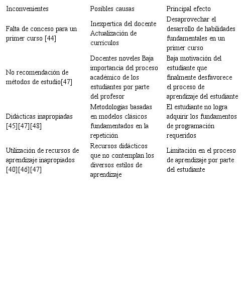 4.1.2 Inconvenientes en la enseñanza de la programación de computadores