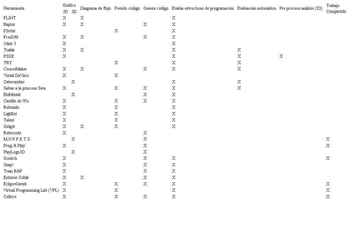 La revisión sistémica permitió determinar las herramientas de software utilizadas para la enseñanza-aprendizaje en un primer curso de programación de computadores clasificadas en cinco categorías como lo muestra la Tabla 10.