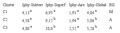En esta investigación, debido a la característica de la tipificación previa, que integraba información topográfica y técnico-productiva, los parámetros estimados presentaron valores similares dentro de los clústeres, tal como se muestra en la (Tabla 1).