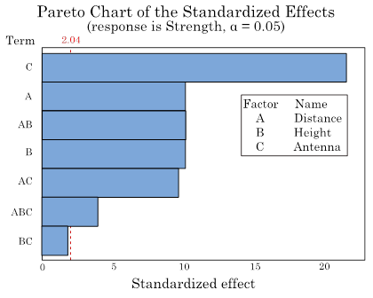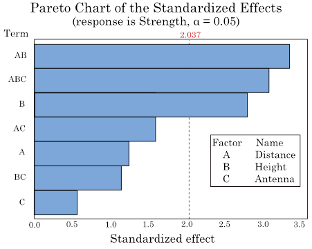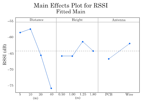 After running the factorial experiment in Minitab, we obtained the combination of parameters that have the highest effect on the outputs (RSSI and data transfer time).