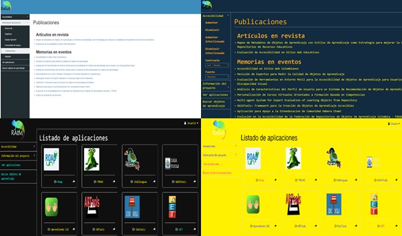 Además, en [17] se plantea una propuesta de adaptación para sitios web que presentan recursos educativos digitales, asociada con accesibilidad, usabilidad y la arquitectura de la información basada en los metadatos. De este modo, se expone al usuario un abanico de perfiles de discapacidad y, a partir de su selección, el sistema podrá personalizar tanto el contenido como la interfaz.