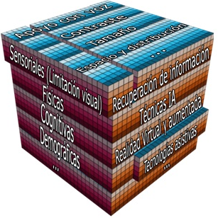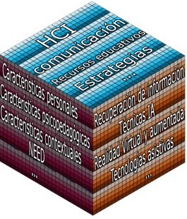 La cara del cubo referente al perfil del usuario representa las características relevantes que determinan las adaptaciones a realizar; además, especifican los elementos o componentes que pueden ser cambiados en beneficio del usuario, a partir del reconocimiento de sus particularidades. Las tecnologías son incluidas, dado que no son únicamente herramientas externas, sino que, para el modelo, son un factor fundamental, a fin de lograr el objetivo de personalización.