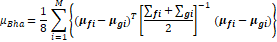 where the first term considers the mean vectors of the GMMs, and the second term is the covariance matrix. As indicated in Equation (3), the similarity measurement between the two models, 𝑓𝑖(𝑥) and 𝑔𝑖(𝑥), considers the mean vectors and the covariance matrix separately. Mean vectors are compared in (4), while the covariance matrix is considered in (5).