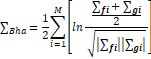 Thus, to calculate the similarity between two models (registration: 𝑓𝑖(𝑥) and log-in: 𝑔𝑖(𝑥)), we can use the Bhattacharyya distance ( 𝐷𝑏ℎ𝑎), where 𝝁𝑚 and the 𝜮𝑚 of each GMM are taken into account [15].