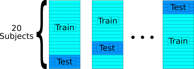 Therefore 4 subjects were considered for the test and 16 were considered for the training. The (Fig.8) shows the test and train sets for each fold.