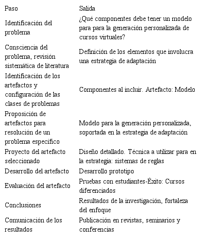 Para la aplicación de DSR, y acorde con [22], la metodología se adecuó según lo presentado en la (Tabla 1).