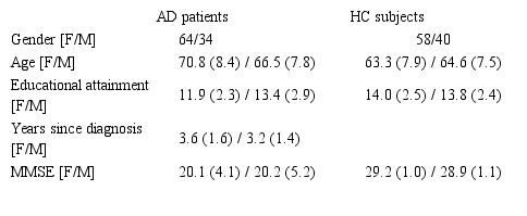 This study considers data from 98 individuals from the AD group and 98 from the HC group. Participants mentioned their age during the first interview.