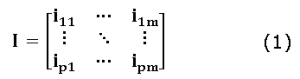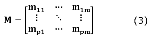 Se recomienda que, en la medida que los expertos evalúan las capacidades, se conformen tres matrices: I (impacto), F (factibilidad) y M (madurez) (ver las matrices representadas en (1), (2) y (3)), en las cuales se almacenen los valores asignados a las capacidades seleccionadas por cada experto. En dichas matrices, las filas (e) se corresponden con las capacidades a evaluar, y las columnas (j), con los expertos incorporados en las mismas. Cada elemento Iej ∈ I, I=(iej) e (iej) corresponde con las evaluaciones asignadas por el experto a cada capacidad, evaluando el criterio impacto, (iej); (ver (1)). Cada elemento Fej ∈ F, F=(fej) y fej corresponde con las evaluaciones asignadas por el experto a cada capacidad, evaluando el criterio factibilidad (ver (2)); y cada elemento mej ∈ M, M=(mej) y mej corresponde con las evaluaciones asignadas por el experto a cada capacidad, evaluando el criterio madurez (véanse expresiones (1, 2, 3)).