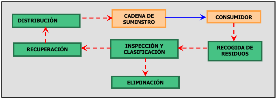 Pero ¿qué sucede con el producto que el consumidor final retorna a la cadena al considerarlo defectuoso, o al que desecha por haber cumplido su ciclo de vida, entre otras razones? Surge entonces la logística inversa como una herramienta adecuada para gestionar correctamente los flujos y llevarlos aguas arriba (flujos inversos de productos) dentro de la cadena de suministro.