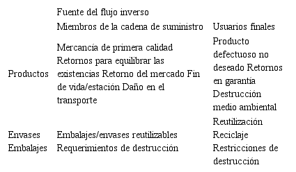 La logística inversa se presenta, básicamente, según cuatro factores [12]: