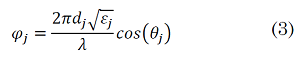 En (3) εj es la constante dieléctrica, dj el espesor y θj el ángulo de incidencia para la j-ésima capa (4).