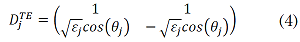 Para la polarización TE, la matriz para la j-ésima capa (=A, B, C y D) de espesores dj (d1, d2, d3 y d4) está representada por (1):