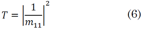 La transmitancia es calculada con el elemento m11 de la matriz M como (6).